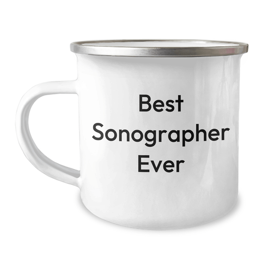 Sonographer Gifts from Friends, Best Sonographer Ever Camping Mug for Graduation, Funny Quote Inside, 12 oz Stainless Steel with Enamel Finish