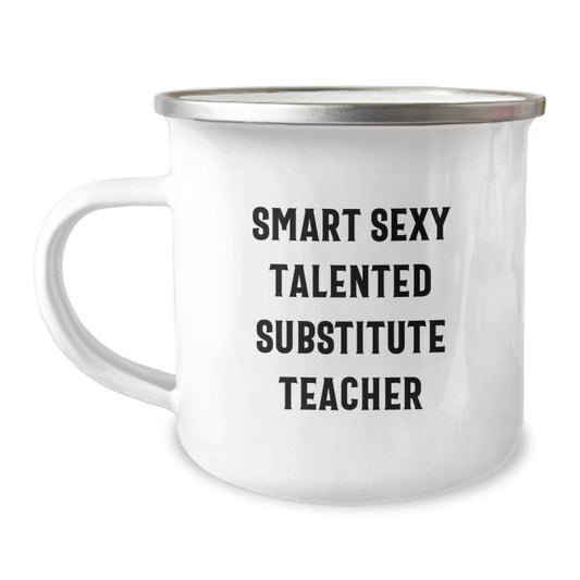 Funny Substitute Teacher Gifts from Friends - 'Smart Sexy Talented' Motivational Camping Mug for Birthday - 12 oz Stainless Steel with Enamel Finish