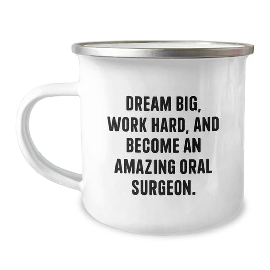 Oral Surgeon Gifts from Friends, Funny Camping Mug for Him or Her, 'Dream Big, Work Hard, And Become An Amazing Oral Surgeon.'