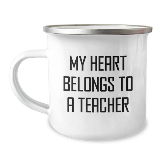 Funny Teacher Gifts from Men - My Heart Belongs To A Teacher, 12 oz Stainless Steel Camping Mug for Birthday, Inspirational Quote for Teachers, Teacher Appreciation Gifts