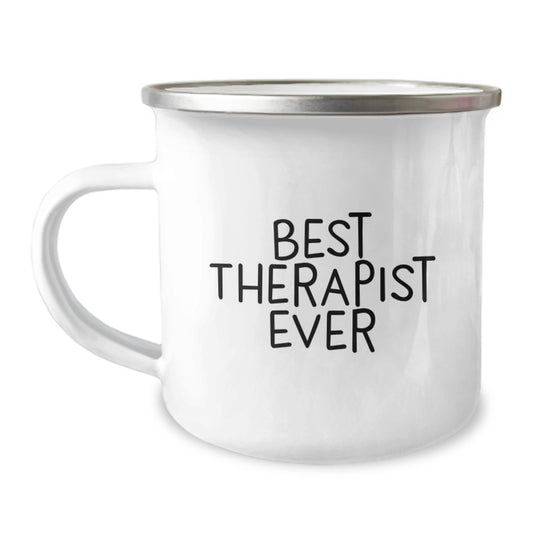 Funny Best Therapist Ever Gifts from Friends for Graduation Unique Camping Mugs, 12 oz Stainless Steel with Enamel Finish, Hand Wash Recommended, Quote: 'Best Therapist Ever'