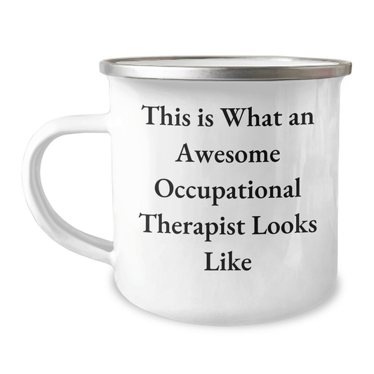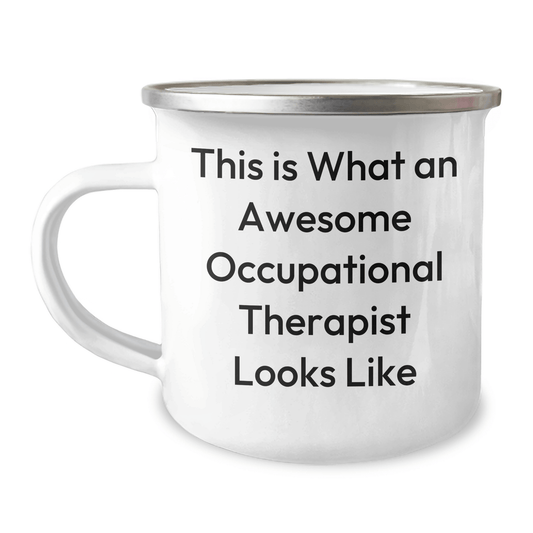 Funny Occupational Therapist Gifts from Friends Unique Camping Mug for Graduation, This Is What An Awesome Occupational Therapist Looks Like Quote, 12 oz Stainless Steel with Enamel Finish