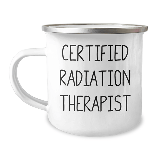 Funny Radiation Therapist Gifts from Men to Radiation Therapist on Father's Day - Certified Radiation Therapist Quote Camping Mug, 12 oz Capacity, Stainless Steel with Enamel Finish