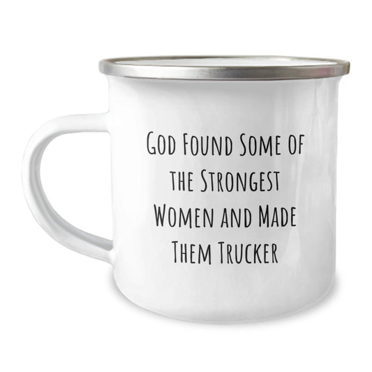Funny Inspirational Trucker Gifts from Friends for Men and Women, Graduation Unique Gifts in Camping Mug, 'God Found Some Of The Strongest Women And Made Them Trucker'