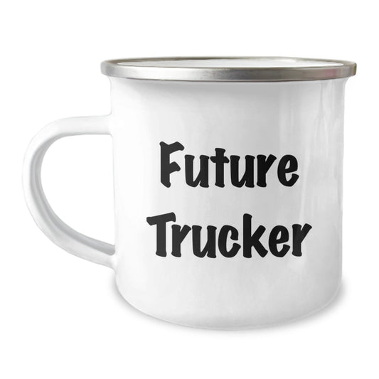 Funny Trucker Gifts from Friends for Future Trucker Graduation, Camping Mug for Him, 'Future Trucker' Quote Inside, 12 oz Stainless Steel with Enamel Finish