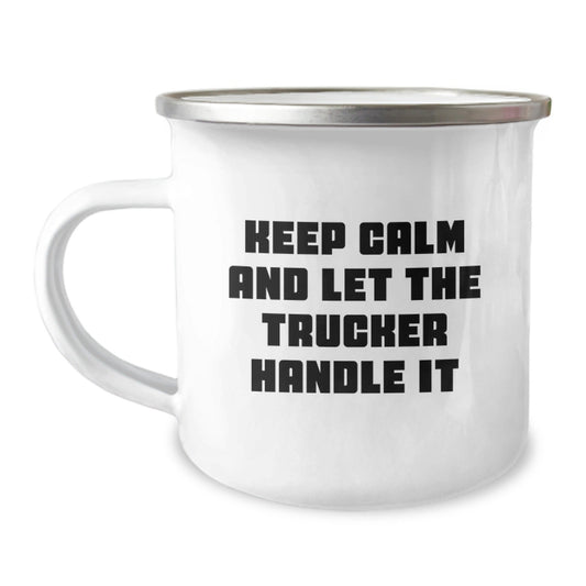 Funny Trucker Gifts from Friends, Gifts for Trucker, Camping Mug, 'Keep Calm And Let The Trucker Handle It', Graduation Unique Gifts