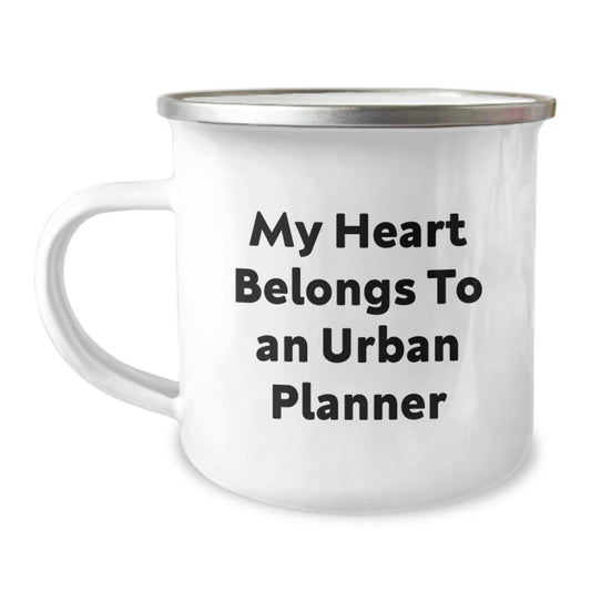 Funny Urban Planner Gifts for Him or Her, 'My Heart Belongs To An Urban Planner' Printed Camping Mug, Gifts from Family, Friends, or Coworkers for Graduation