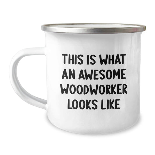 Funny Woodworker Gifts from Friends - This Is What An Awesome Woodworker Looks Like Enamel Camping Mug for Birthday