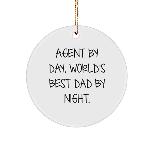 Agent Gifts from Family - Agent By Day, World's Best Dad By Night. Circle Ornament, Funny Quote, Christmas Decor