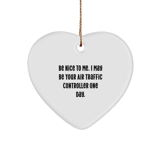 Funny Air Traffic Controller Heart Ornament Gifts from Men to Air Traffic Controller Friends - 'Be Nice To Me' Christmas Unique Gifts