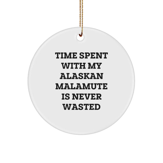 Alaskan Malamute Dog Lovers Circle Ornament Gifts from Friends and Family for Christmas - Time Spent With My Alaskan Malamute Is Never Wasted, Funny Inspirational Quote