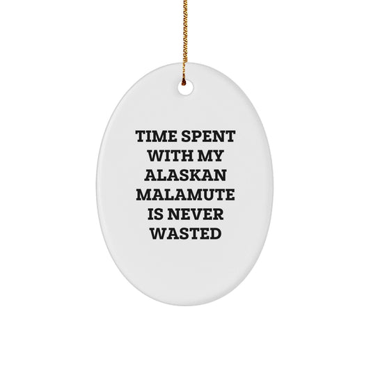 Alaskan Malamute Dog Lover's Gift, Time Spent with My Alaskan Malamute Is Never Wasted, Oval Ornament for Men, Women, Friends, Family, Christmas Unique Gifts from