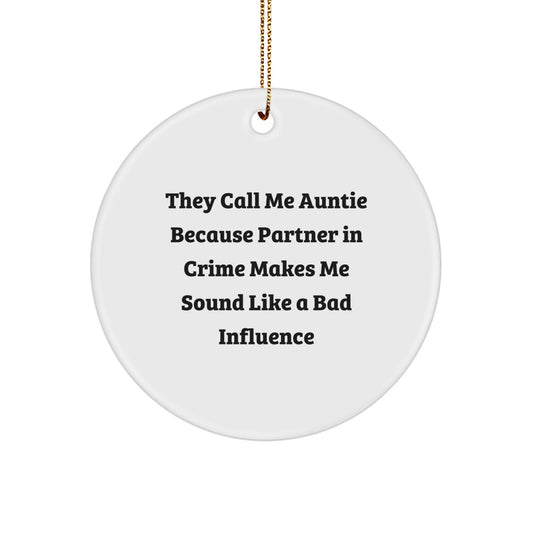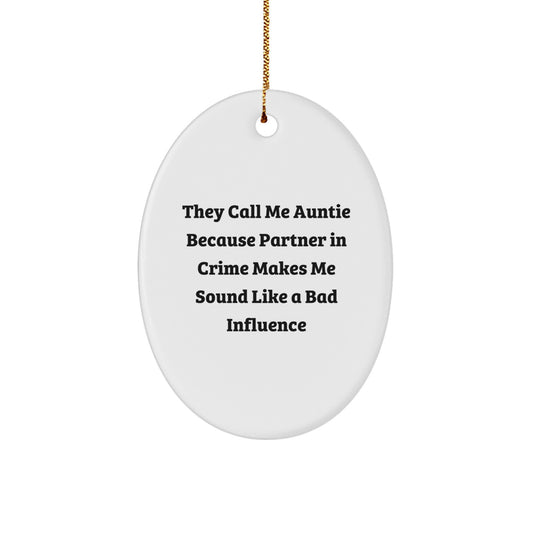 Funny Auntie Oval Ornament Gifts from Men Women Friends Family - 'They Call Me Auntie Because Partner In Crime Makes Me Sound Like A Bad Influence' Christmas Unique Gifts