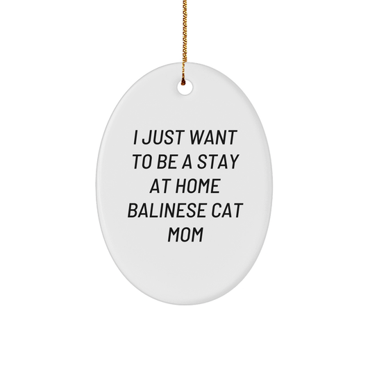 Balinese Cat Mom Oval Ornament Gifts from Family, Friends, or Coworkers - I Just Want To Be A Stay At Home Balinese Cat Mom, White, 3.25 Inch, Christmas Unique Gifts