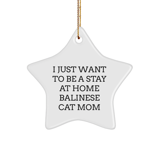Funny Balinese Cat Mom Gifts from Friends to Balinese Cat, I Just Want To Be A Stay At Home Balinese Cat Mom, Star Ornament for Christmas