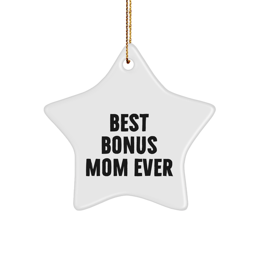 Funny Bonus Mom Gifts, 'Best Bonus Mom Ever' Star Ornament, White, 3.25" Tall, Christmas Unique Gifts from Family to Bonus Mom