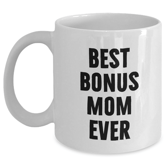 Funny Bonus Mom Gifts from Friends - 'Best Bonus Mom Ever' White Coffee Mug for Dad's Special Day
