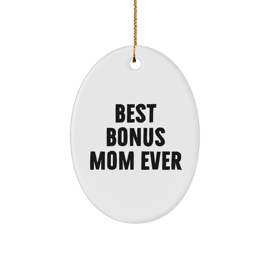 Gifts from Friends, Family, or Coworkers - Best Bonus Mom Ever Oval Ornament, White, 3.25" Tall, Christmas Unique Gifts for Bonus Mom