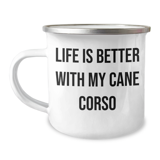 Funny Cane Corso Dog Gifts from Mom - Best Camping Mug for Cane Corso Dog Mom on Birthday, Best Cane Corso Mom Ever Quote, 12 oz Stainless Steel, Enamel Finish, Hand Wash Recommended