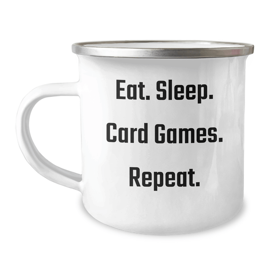 Funny Card Games Enthusiast Gifts for Dad, Eat. Sleep. Card Games. Repeat. - Unique Camping Mug for Father's Day