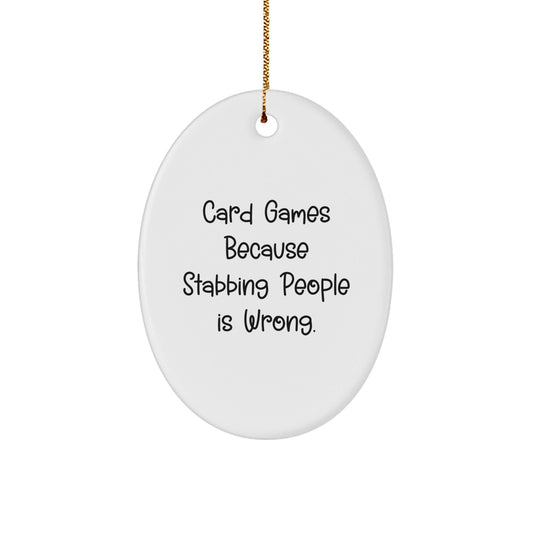 Funny Card Games Gifts from Friends - Oval Ornament with 'Card Games Because Stabbing People Is Wrong.' Quote for Christmas