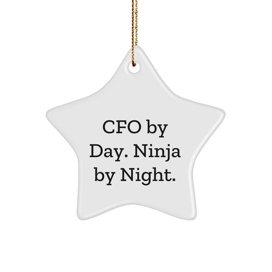 CFO Gifts: 'Cfo By Day. Ninja By Night.' Funny Star Ornament, White, 3.25" Tall, Christmas Unique Gifts from Friends to CFO