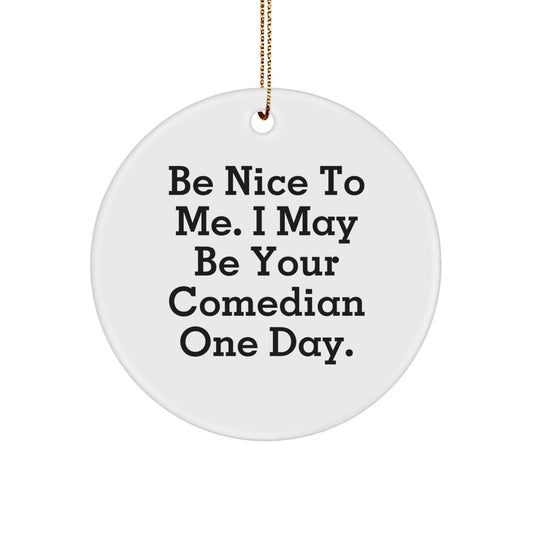 Comedian Gifts, Funny Circle Ornament, Be Nice To Me, Gifts from Friends, Gifts for Comedian
