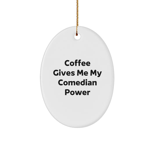 Funny Comedian Gifts from Friends for Comedian Christmas Oval Ornament - 'Coffee Gives Me My Comedian Power' - Unique, Lightweight, and Durable