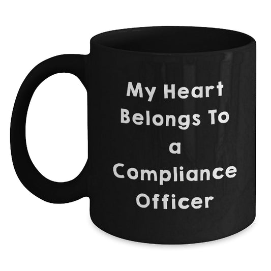 Funny Compliance Officer Gifts from Friends - My Heart Belongs To A Compliance Officer White Coffee Mug, Birthdays for Compliance Officer, Unique Gifts from Family