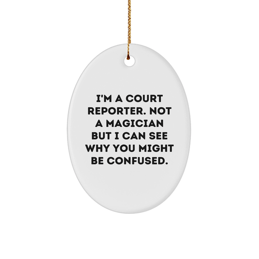 Court Reporter Oval Ornament Gifts for Men from Friends, Funny Quote, White Oval Shaped, Christmas Unique Gifts