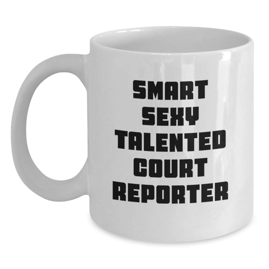 Funny Court Reporter Gifts for Men, White Coffee Mug with 'Smart Sexy Talented Court Reporter' Quote, Graduation Unique Gifts from Family to Friends