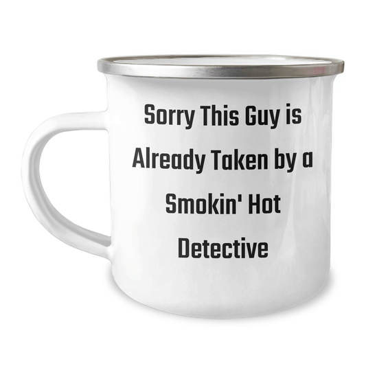 Funny Detective Gifts from Men, Gifts for Detective, Sorry This Guy Is Already Taken By A Smokin' Hot Detective Camping Mug, Perfect for Father's Day