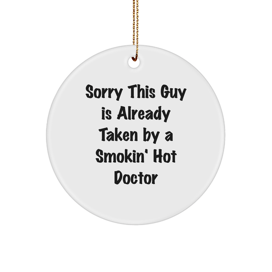 Funny Doctor Gifts from Friends - Sorry This Guy Is Already Taken By A Smokin' Hot Doctor Circle Ornament for Christmas