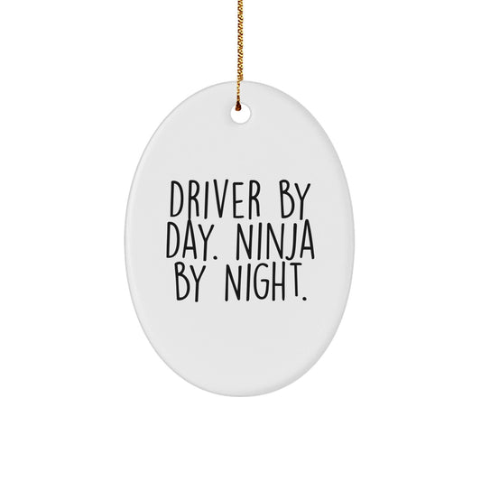 Driver Gifts From Friends and Family - 'Driver By Day. Ninja By Night.' Oval Ornament for Men, Christmas Unique Gifts for Him