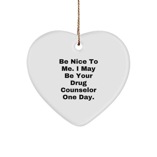 Funny Quote Drug Counselor Heart Ornament Gifts from Friends for Men and Women, 'Be Nice To Me'