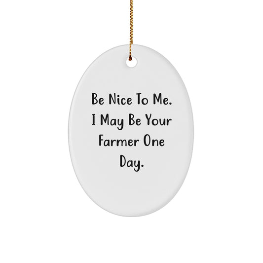 Farmer Gifts from Friends, Funny Oval Ornament Be Nice To Me, I May Be Your Farmer One Day, Christmas Unique Presents
