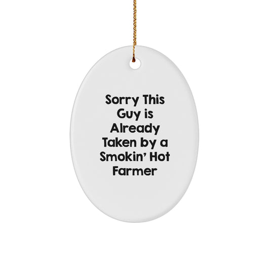 Farmer Gifts, Funny Quote Oval Ornament for Men, Sorry This Guy Is Already Taken By A Smokin' Hot Farmer, Christmas Unique Gifts from Friends