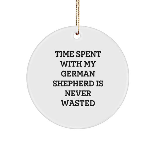 German Shepherd Dog Lover's Gift, 'Time Spent with My German Shepherd Is Never Wasted', Circle Ornament, White, for Christmas Unique Gifts from Family, Friends, or Coworkers