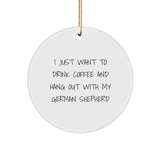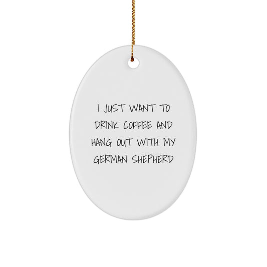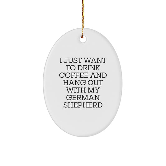 Funny German Shepherd Dog Lovers Gift, Oval Ornament 'I Just Want To Drink Coffee And Hang Out With My German Shepherd' for Men, Women, Family, Coworkers, Christmas Unique Gifts from Friends