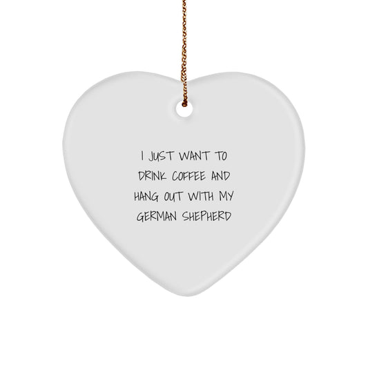 Funny German Shepherd Dog Heart Ornament Gifts for Men from Family - I Just Want To Drink Coffee And Hang Out With My German Shepherd