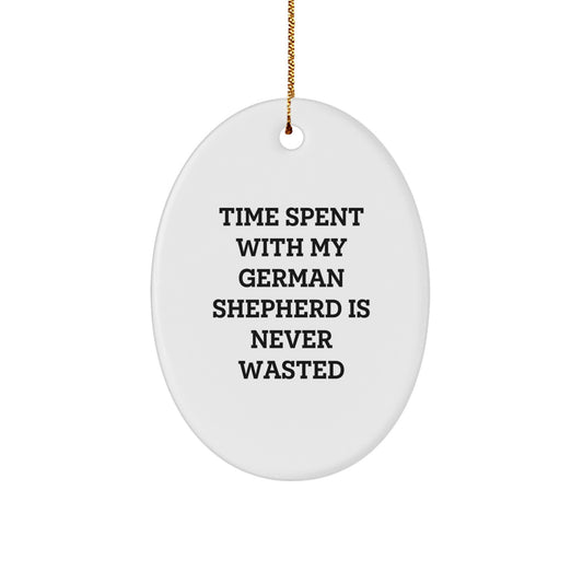 German Shepherd Dog Oval Ornament Gifts from Family, Friends, or Coworkers for Christmas - Quotes Say 'Time Spent With My German Shepherd Is Never Wasted', Funny and Cute German Shepherd Lover Gift