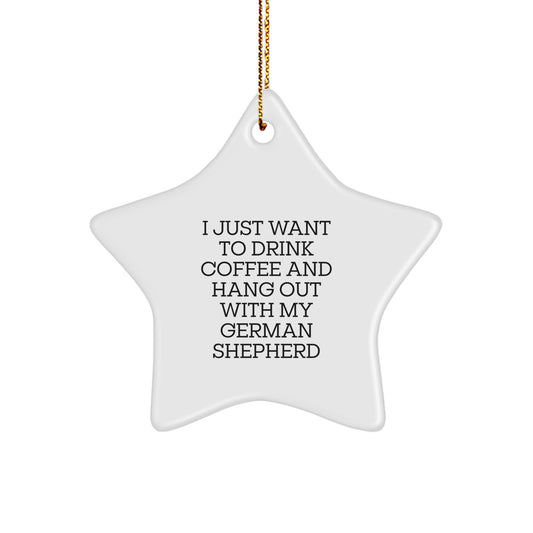 Funny German Shepherd Dog Lover Gifts from Family for Christmas Unique Star Ornament, I Just Want To Drink Coffee And Hang Out With My German Shepherd, White Star Shaped Decorations