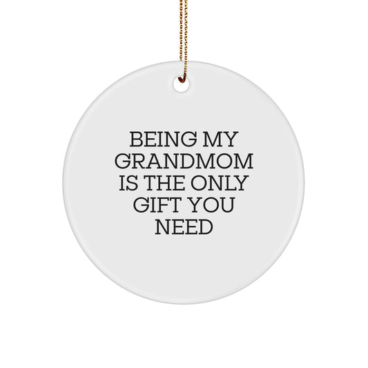 Funny Grandmom Gifts from Men, Women, or Family - Circle Ornament, 'Being My Grandmom Is The Only Gift You Need' for Christmas