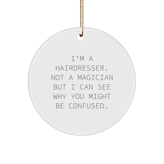 Funny Hairdresser Gifts from Friends for Hairdresser, Oval Ornament Christmas Unique Gifts, I'm A Hairdresser. Not A Magician But I Can See Why You Might Be Confused.