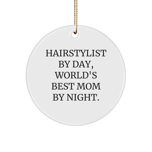 Hairstylist Gifts from Family, Hairstylist By Day, World's Best Mom By Night, Circle Ornament for Hairstylist, Christmas Unique