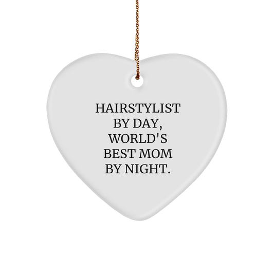Hairstylist Gifts from Women, Heart Ornament for Hairstylist By Day, World's Best Mom By Night., Funny Quote Christmas Unique Gifts.