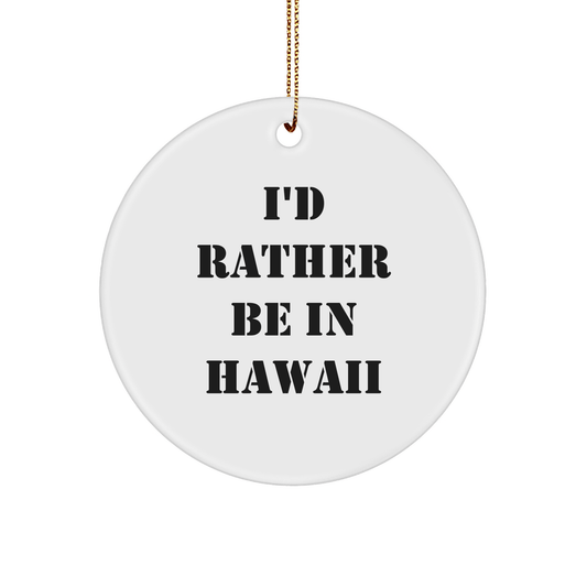 Hawaii Circle Ornament, 'I'd Rather Be In Hawaii' Funny Quote, Gifts from Men to Friends, Perfect for Christmas Decorations