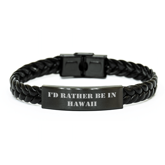 Gifts from Friends to Hawaii Lovers, I'd Rather Be In Hawaii Rope Bracelet, Adjustable Black Stainless Steel with Interlaced Rope, Unique Graduation Gift for Men and Women