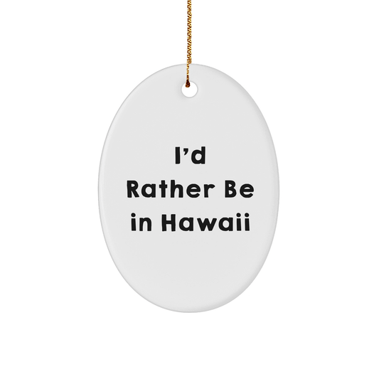 Gifts from Friends to Hawaii Lovers - I'd Rather Be In Hawaii Oval Ornament, Funny Christmas Decorations, Oval Shaped, White Color, Perfect for Home, Office or Gift Giving