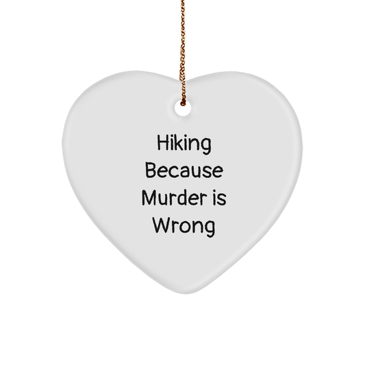Hiking Humor Gifts for Him from Friends, Funny Heart Ornament with 'Hiking Because Murder Is Wrong' Quote, Christmas Unique Presents